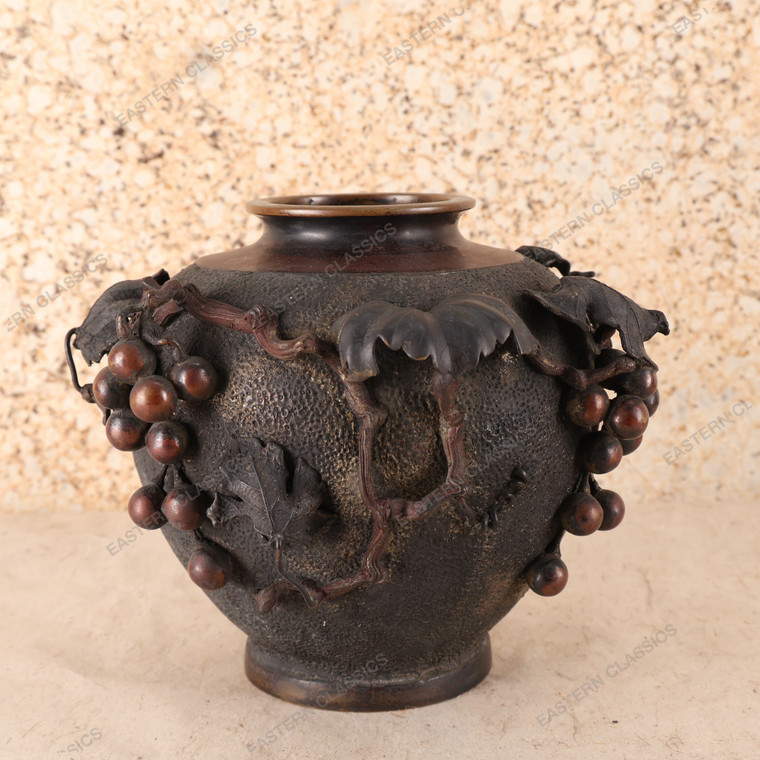 Antique Japanese Vase With Grapes , Bronze, Taisho Era (SKU 25S-798)